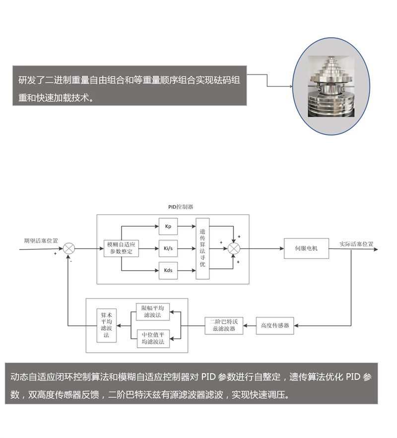 ①整數(shù)壓力點(diǎn)砝碼質(zhì)量全自動加載功能