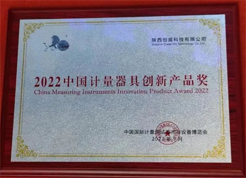 2022年9月7~9日,在江蘇南京召開的第四屆“中國國際計量測試技術與裝備博覽會上,創威科技獲得組委會專家的認可。獲《2022中國計量器具創新產品獎》。