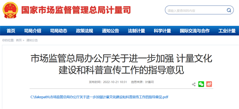 市場(chǎng)監(jiān)管總局辦公廳關(guān)于進(jìn)一步加強(qiáng)計(jì)量文化建設(shè)和科普宣傳工作的指導(dǎo)意見(jiàn)