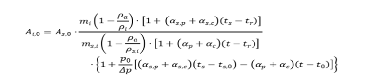 提供液體活塞式壓力計的技術升級服務 CV系列活塞式壓力計 CW系列活塞式壓力計 砝碼配置軟件 活塞有效面積檢定的起始平衡法計算軟件 新規程的變化之一是:活塞有效面積的檢定優先使用起始平衡法,給出了起始平衡法的計算公式,規定了起始平衡點;把直接平衡法作為附錄供需要者使用。 相對于2007版檢定規程,新規程中活塞有效面積的計算公式發生了變化,將壓力計的活塞有效面積計算分為兩種情況:一種是不需要實測壓力形變系數的壓力計活塞有效面積計算,另一種是需要實測壓力形變系數的壓力計的活塞有效面積和壓力形變系數計算。每一種情況涉及的參數都比較多,例如前者涉及公式(2)(3)(4)(5)5個公式,后者涉及公式(6)(7)(8)(公式略)3個公式,涉及參數比較多,僅以公式(2)為例: