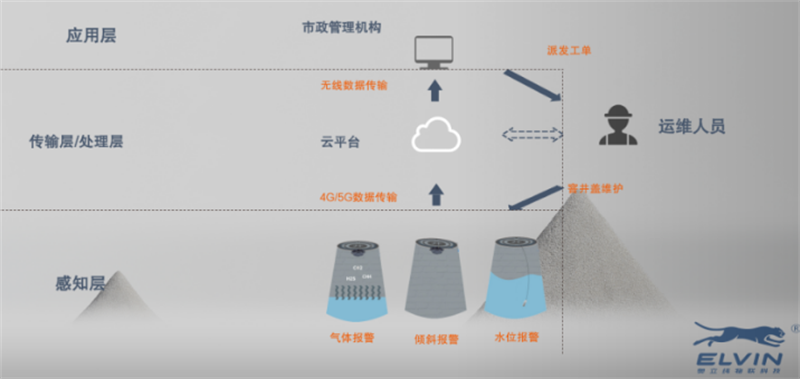奧立緯ELV-ZJ 系列智能井蓋檢測終端安裝于井蓋下,可以實時檢測井蓋狀態(tài),通過算法屏蔽抖動等現(xiàn)場干擾判斷現(xiàn)場運行狀態(tài),當(dāng)井蓋狀態(tài)異常,出現(xiàn)有人翻動井蓋、井蓋移位、翻轉(zhuǎn)、井蓋漫水等異常情況時,設(shè)備觸發(fā)報警上報,信息通過網(wǎng)絡(luò)由基站傳輸至市政井蓋管理系統(tǒng)服務(wù)器,管理人員可通過軟件第一時間獲取報警信息,及時派人處理,從而達(dá)到智能管理迅捷響應(yīng)解決現(xiàn)場問題目的。