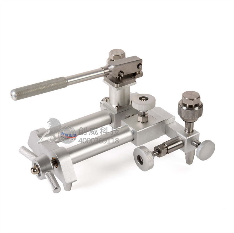 手動便攜壓力泵,是我公司研發的氣體壓力泵:它結構簡單、操作省力、便于攜帶、不易泄漏、維護量少。在設計上規避了手鉗式氣壓泵的缺陷。可以產生負壓,可以進行壓力真空表的實驗是。可為現場校驗-0.095MPa~6MPa量程范圍內壓力儀表,提供穩定壓力源,如果它與CWY122智能數字壓力校驗儀組合使用,可以形成工業現場校驗各種壓力變送器、壓力開關、壓力表及其它壓力儀器、儀表的方案。
