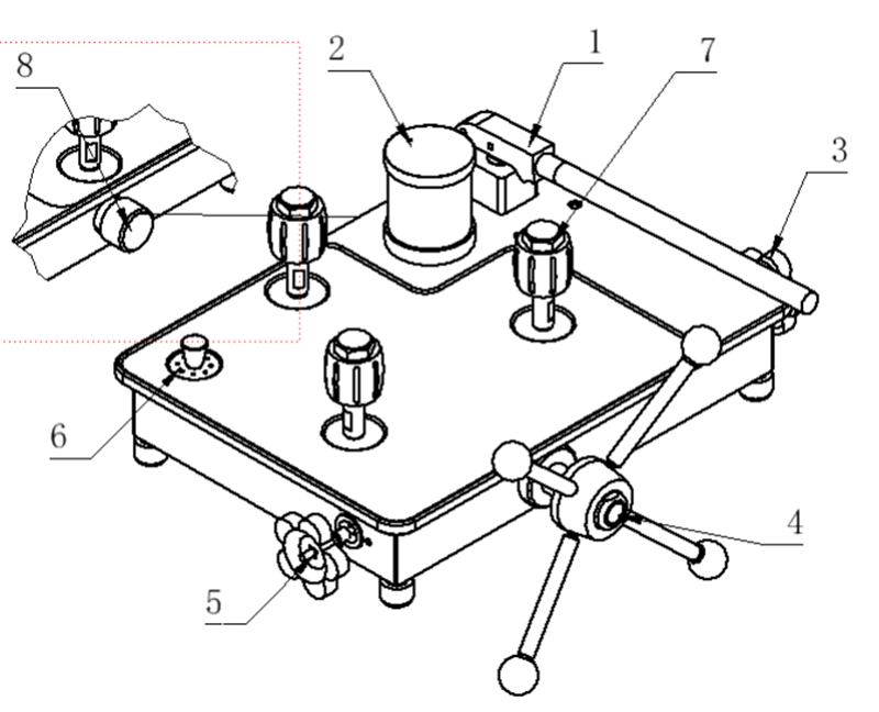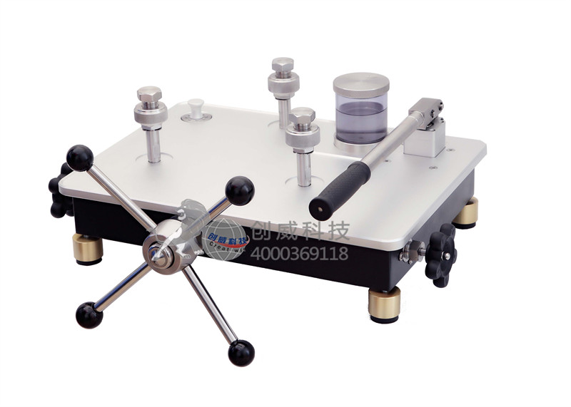 該校驗器結(jié)構(gòu)簡單、操作維護方便、不易泄漏、升降壓平穩(wěn),采用壓桿式預壓結(jié)構(gòu),可快速發(fā)生所需壓力值,減少因傳壓介質(zhì)被污染而造成的管路堵塞問題。